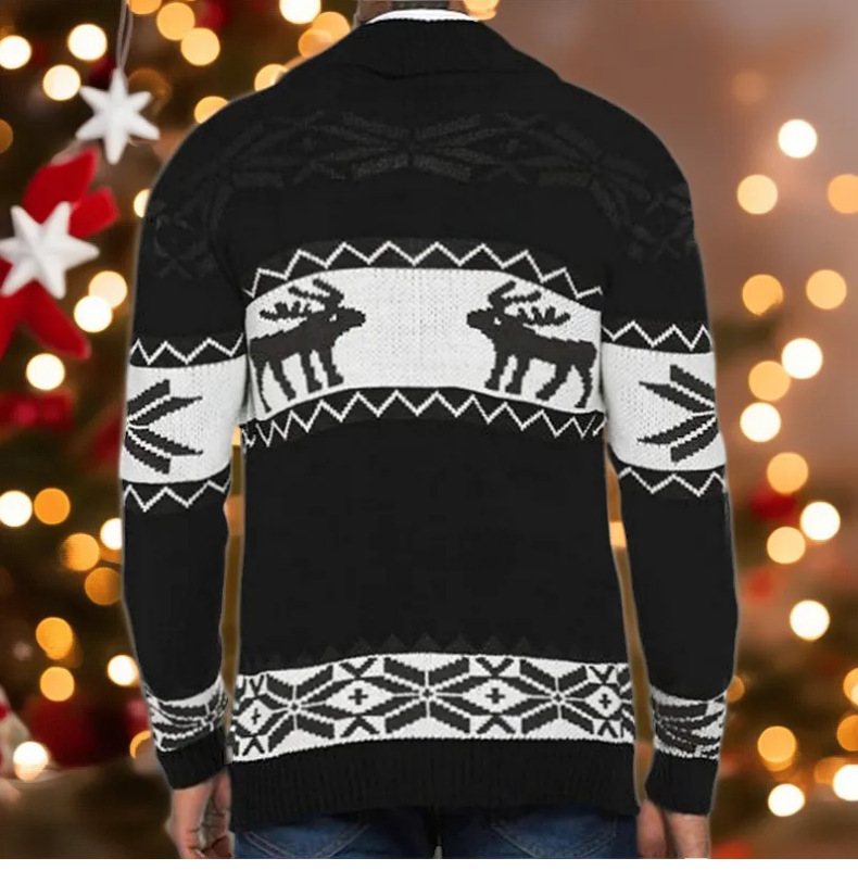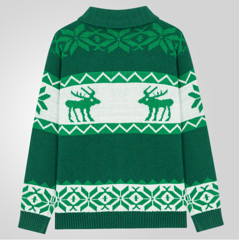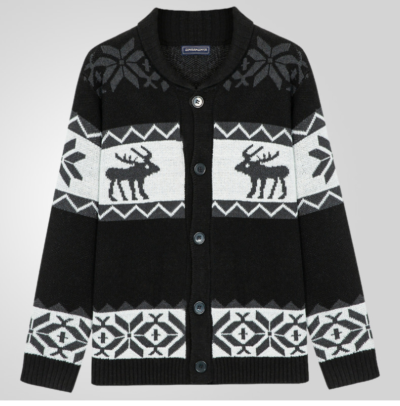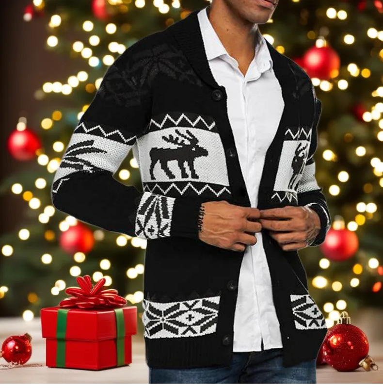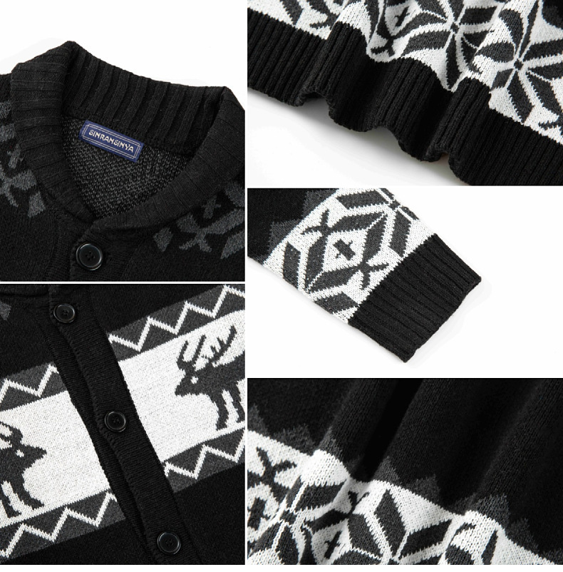 Christmas Jacquard Knitted Sweater Button Open Sweater Coat