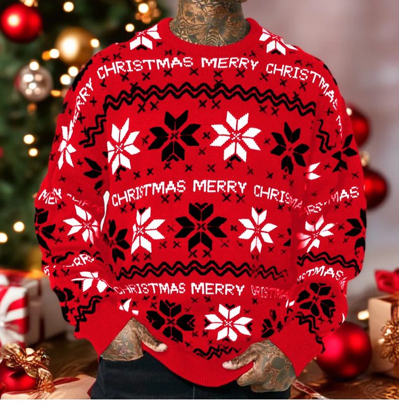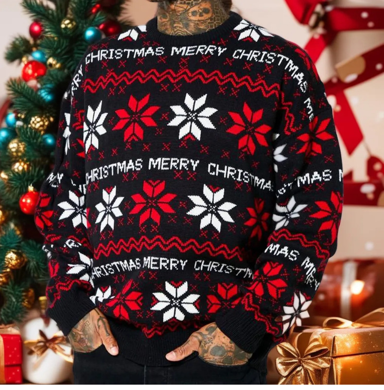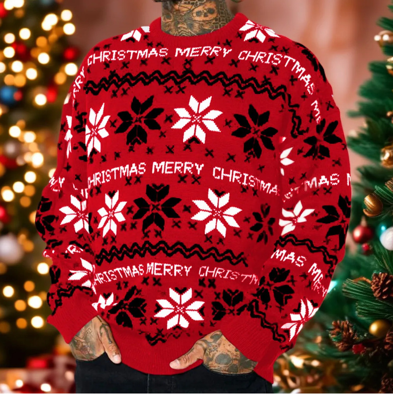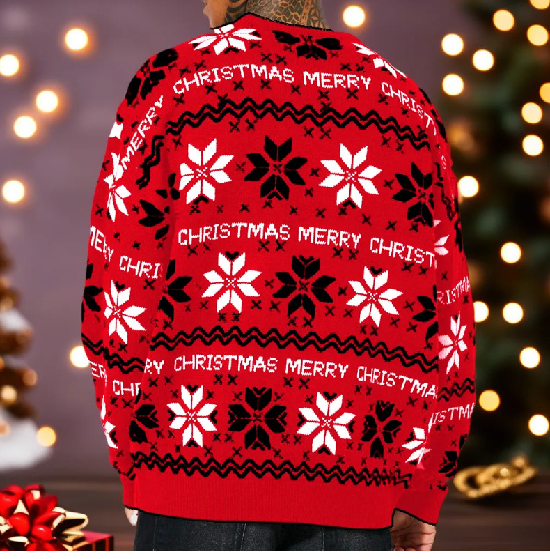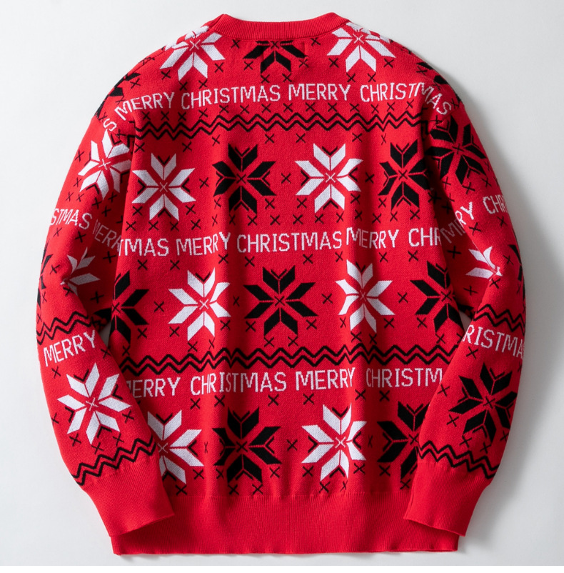 Christmas jacquard sweater loose shoulder long sleeved thin sweater