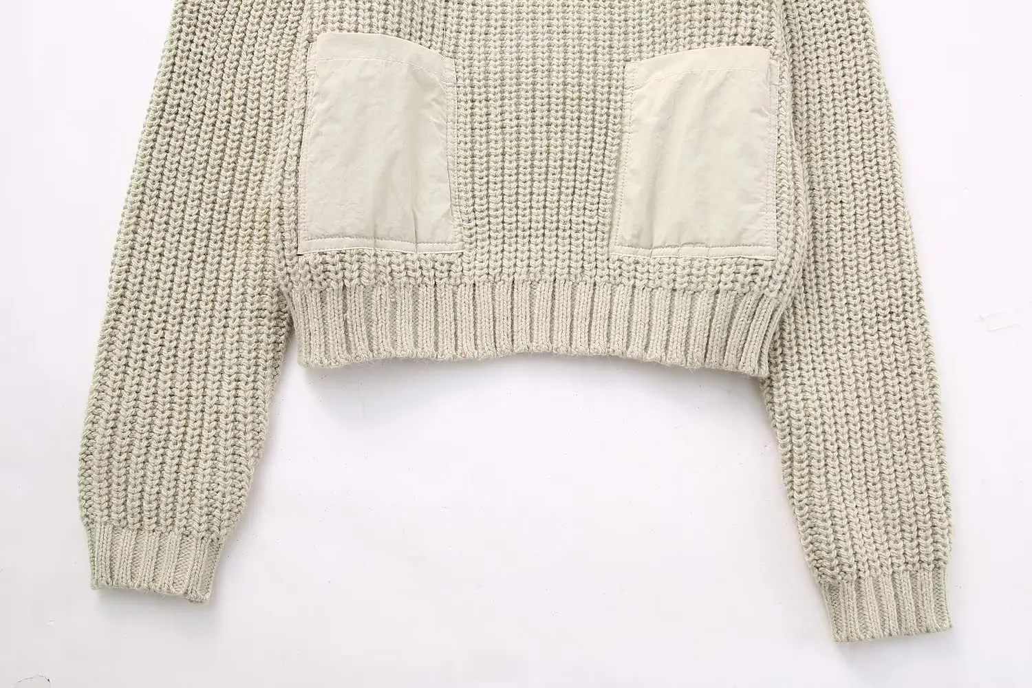 Contrast Cropped Sweaters for Women  Pullovers Knitted Sweater Woman Long Sleeve Ribbed Women's Sweater Autumn Jerseys