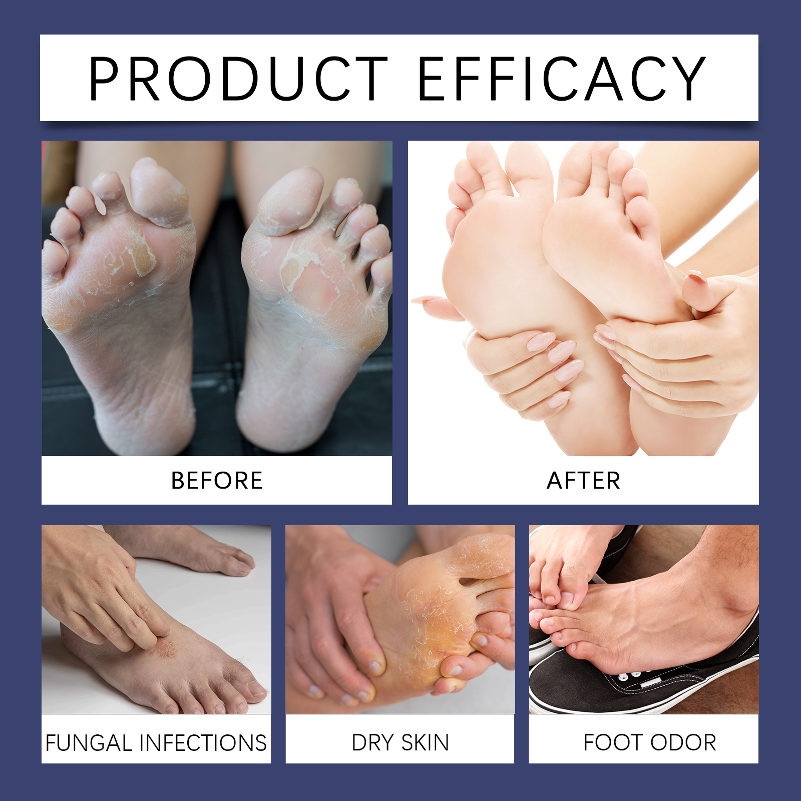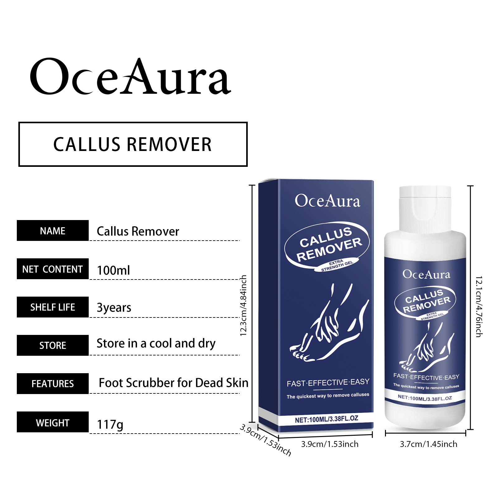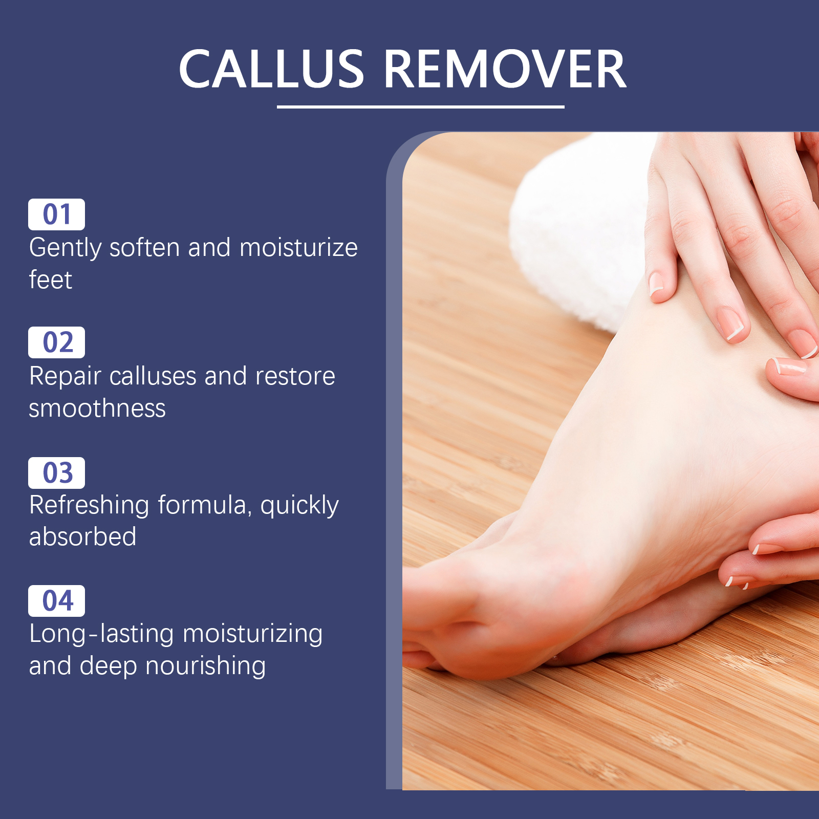 Our foot exfoliating gel contains lemon fruit extract, citric acid, aloe vera extract. It can deeply penetrate the hardened cuticle, quickly soften the foot scab, and easily remove stubborn dead skin. The way to use it is simple: 1. Wash and dry your feet. 2. Squeeze out the gel and apply to areas that need to be exfoliated. 3. Gently massage the circle until the dead skin is gone. Rinse with water. Rich in moisturizing ingredients, soft and deep nourish skin, keep feet soft and smooth.