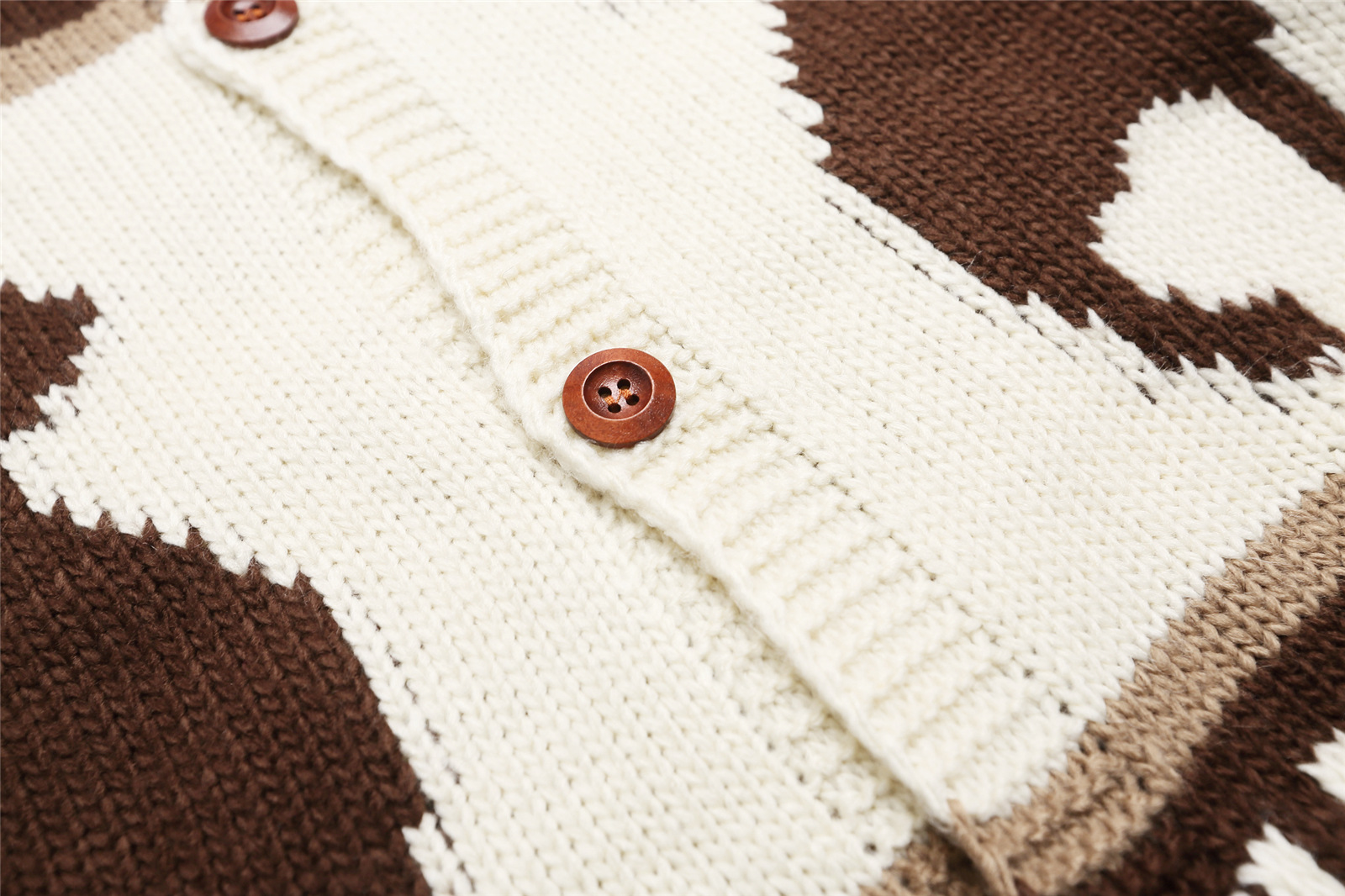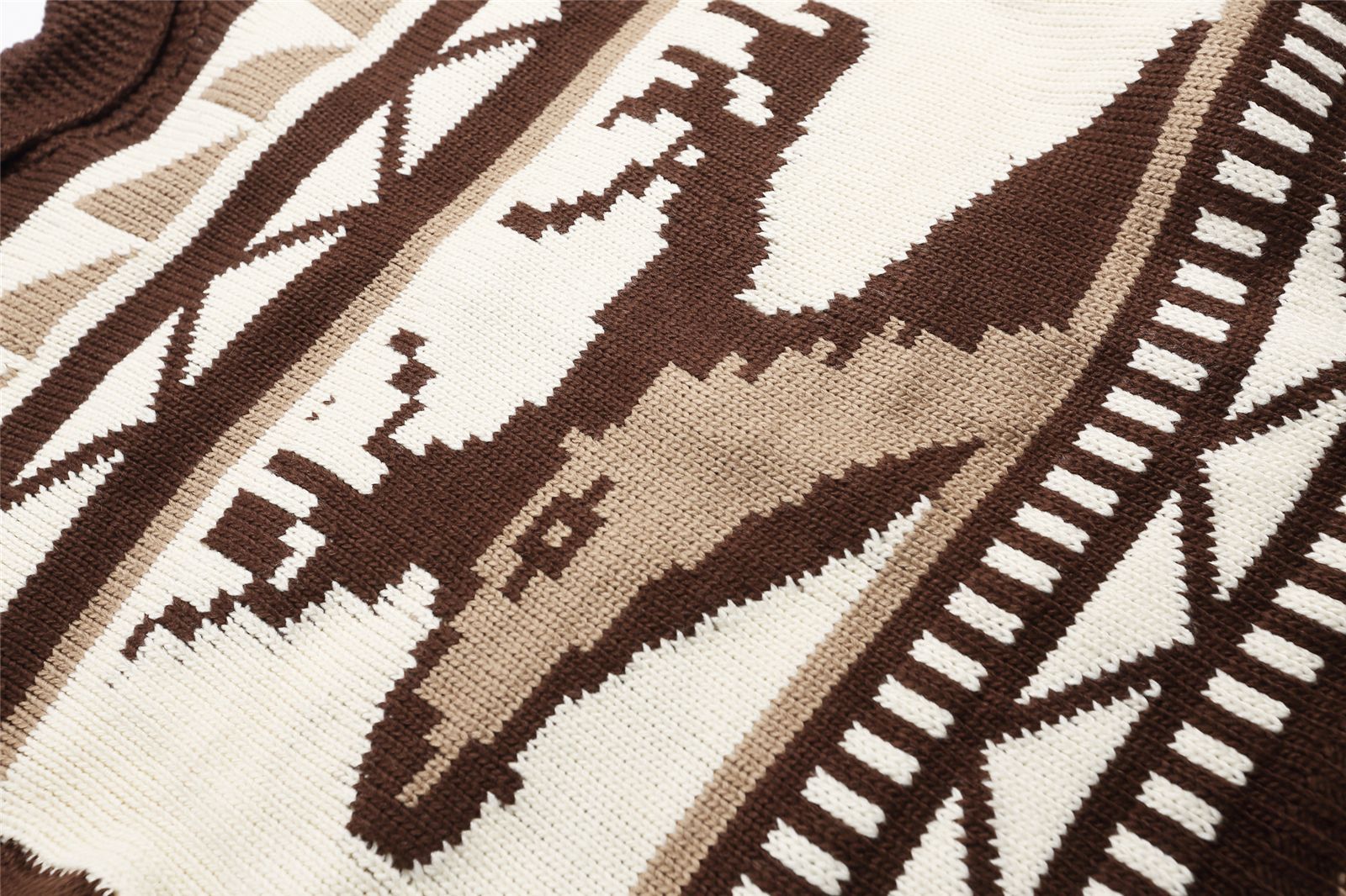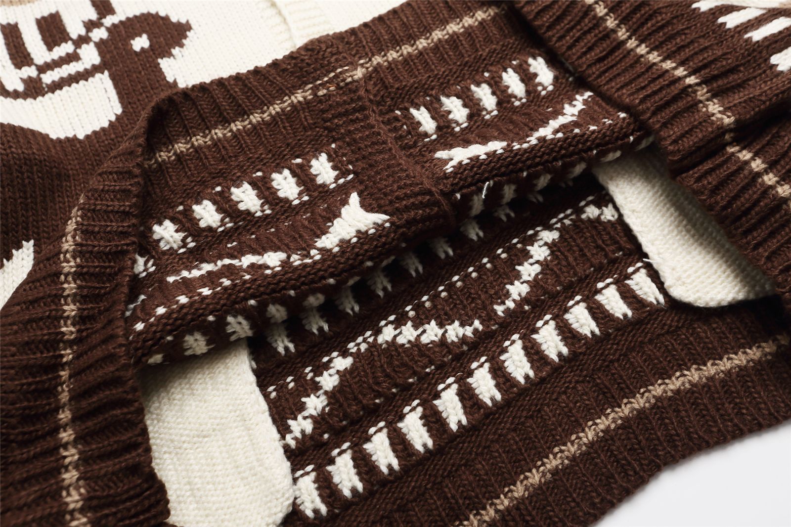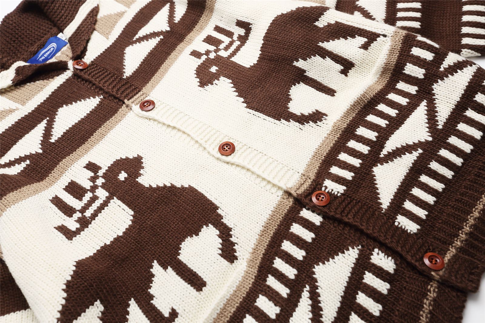 Retro Elk Jacquard Small Lapel Knit Cardigan Loose Lazy Couple Sweater